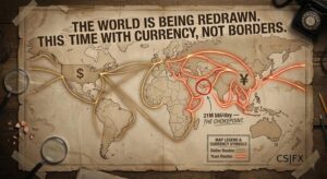 The petrodollar system is the informal arrangement, negotiated by Henry Kissinger with Saudi Arabia in 1974, under which oil is priced in U.S. dollars globally — meaning every oil-importing nation must maintain dollar reserves to purchase its energy. This creates structural demand for dollars that has supported the dollar’s reserve status for fifty years and allowed the U.S. to run persistent trade deficits without the balance of payments crises that afflict other debtor nations. The system is fragmenting at the margins: Russia settles energy transactions in yuan and rupees; China and Saudi Arabia have begun bilateral yuan-denominated oil payment experiments; the dollar’s reserve share has fallen from 71.5% in 1999 to 56.32% in 2025. But “ending” is too strong a word for Q1 2026. Fragmenting, diversifying, and slowly decentralising are more accurate. The transition from the pound sterling to the dollar as the dominant reserve currency took 40 years from 1916 to 1956; the transition from dollar dominance to a multipolar currency system is likely to take a comparable period.