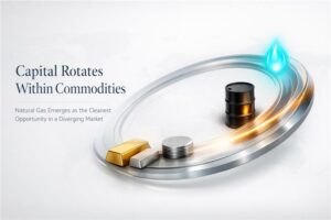 Energy markets present a different narrative. WTI crude faces persistent oversupply concerns following weaker demand projections and a sharp rise in US inventories. Meanwhile, geopolitical tensions involving Iran offer potential upside risk if diplomatic efforts deteriorate. Natural Gas remains weather-driven, with fading winter demand expectations weighing on prices despite broader structural support from longer-term moving averages.