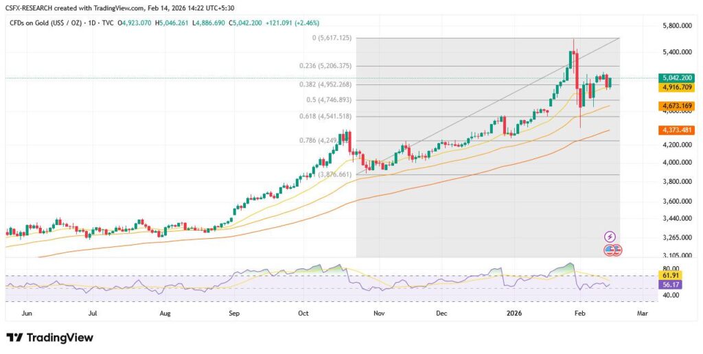 Gold continues to trade within a volatile but broadly supported range, holding near the $5,000 mark. Price action remains heavily influenced by shifting Federal Reserve expectations and US inflation trends.