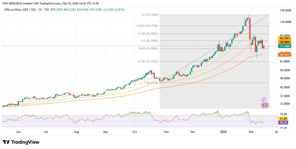 Silver remains more volatile than Gold, reflecting its dual role as both a precious and industrial metal. Recent price swings have been amplified by broader market liquidations and shifting macro expectations.