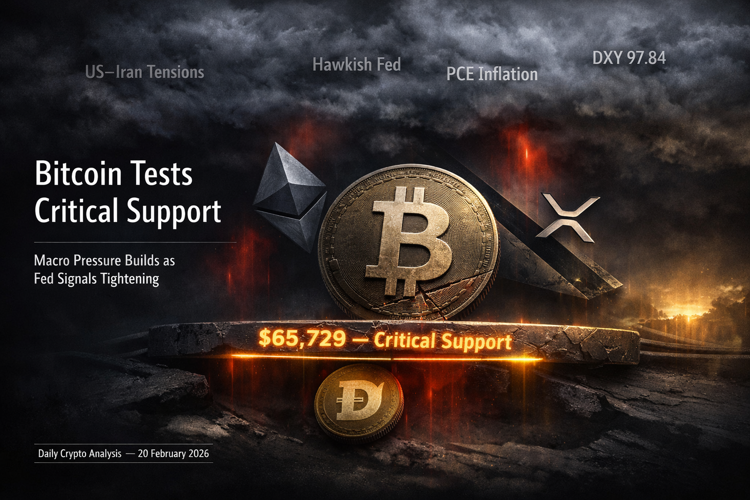 BTC is heading for its fifth consecutive weekly decline. Ethereum, XRP, and Dogecoin are all trading under bearish pressure as US–Iran tensions and Fed hawkishness are tightening financial conditions.