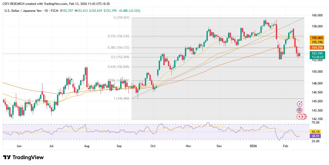 Technically the cleanest setup among the four. Bearish moving average alignment and RSI in sell territory reinforce downside bias. Any recovery toward the 155 area looks corrective unless inflation surprises materially lift US yields.