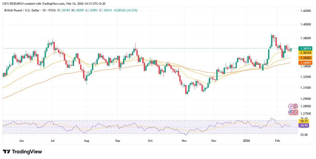 GBP/USD remains under mild pressure after retreating from weekly highs near 1.3700. Disappointing UK GDP data has reinforced expectations that the Bank of England may lean more cautiously on policy tightening, limiting Sterling’s upside momentum.