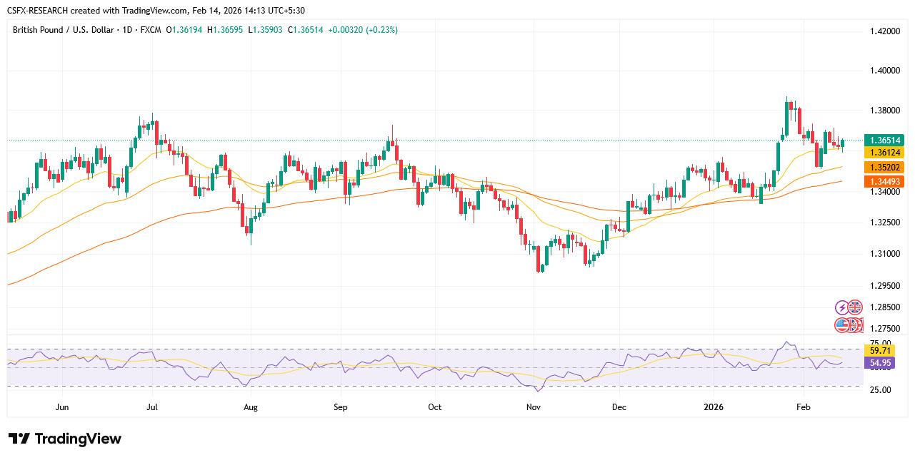 The pair remains highly sensitive to US CPI outcomes and broader risk sentiment. While technical support near 1.3600 is holding for now, conviction remains limited.