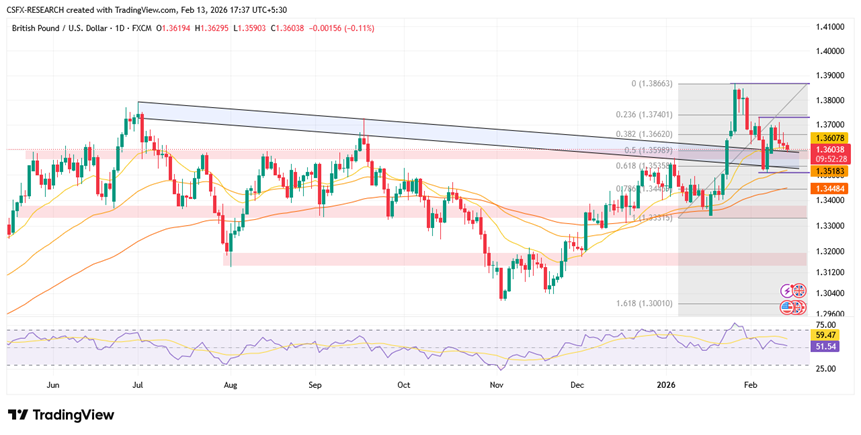 The British Pound (GBP) remains under pressure against the US Dollar (USD) for a fourth straight session, hovering near the 1.3600 level on Friday after retreating from weekly highs above 1.3700. A cautious, risk-off tone in global markets is supporting the Dollar’s rebound, while trading activity remains subdued ahead of the US Consumer Price Index (CPI) release.