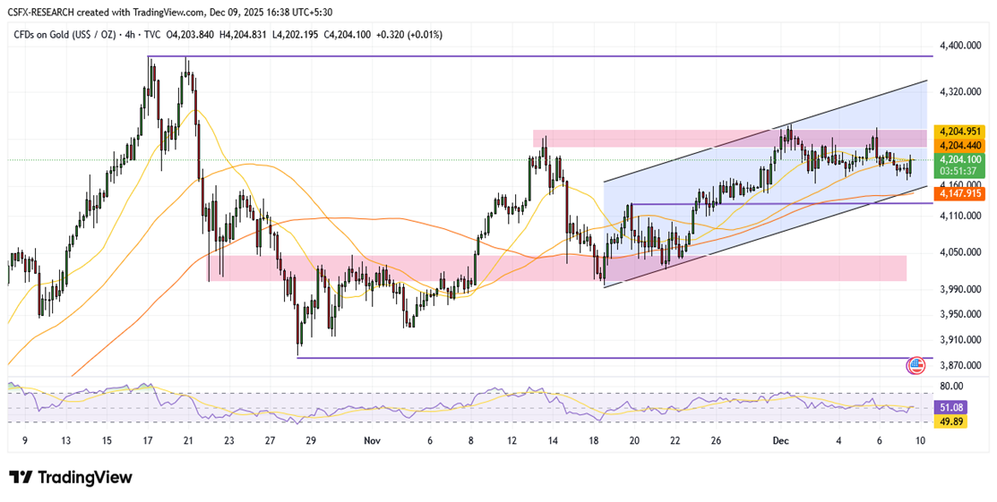 A break below 4,086.50 would weaken the bullish structure, opening scope for a move toward 4,050–4,020.