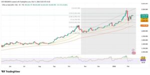 Silver came under intense selling pressure on Friday as heightened volatility triggered margin calls and forced liquidations, accelerating the downside move. After peaking at a record $121.66, the metal shed more than 12% intraday, marking one of its sharpest daily declines in recent history.
