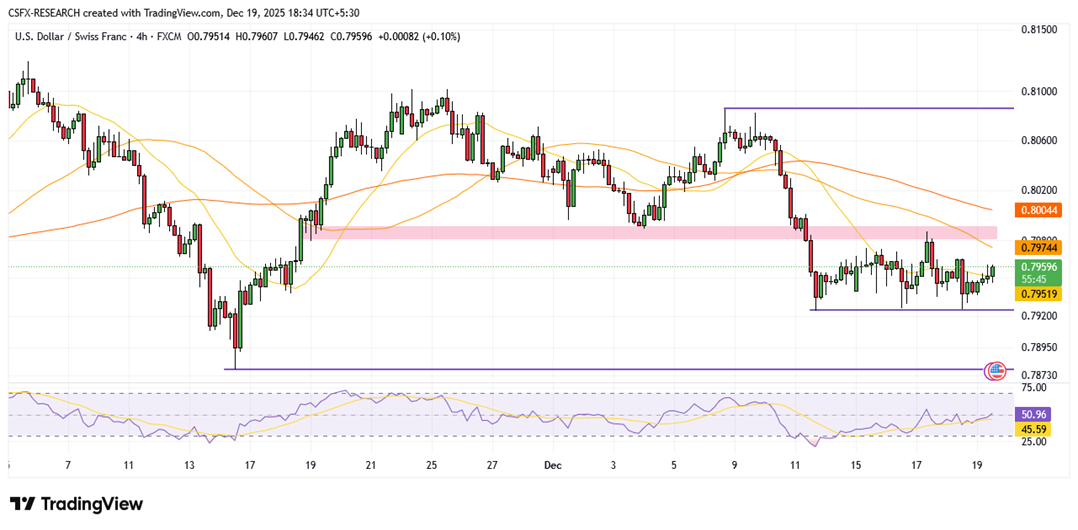 USD/CHF is attempting to recover toward 0.7950, but the broader technical structure remains bearish. As long as the pair stays below the 0.7990–0.8000 resistance zone, downside risks are likely to persist.