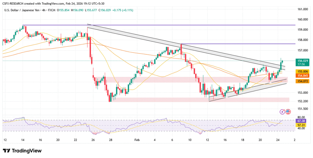 TRADE SUGGESTION- LIMIT BUY– 155.27, TAKE PROFIT AT- 157.30, SL AT- 154.20.