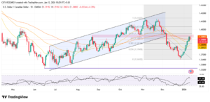 After a brief rise, the USD/JPY price began to encounter upward resistance before reversing direction and dropping. Since then, the USD/JPY exchange rate has been declining and making lower lows. Currently trading at a critical support level, more decline is possible if this level is broken.